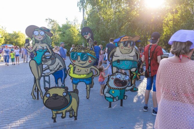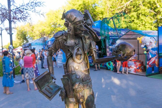 Так же, как и на столичном Арбате, здесь, в Яровом, много сувенирных лавочек и просто интересных развлечений: уличные артисты, прокат гироскутеров, экзотические животные, полет на тарзанке и многое другое. Необычные скульптуры местного архитектора Александра Капралова известны не только в Яровом, но и во всей Сибири.