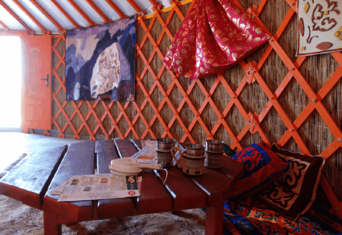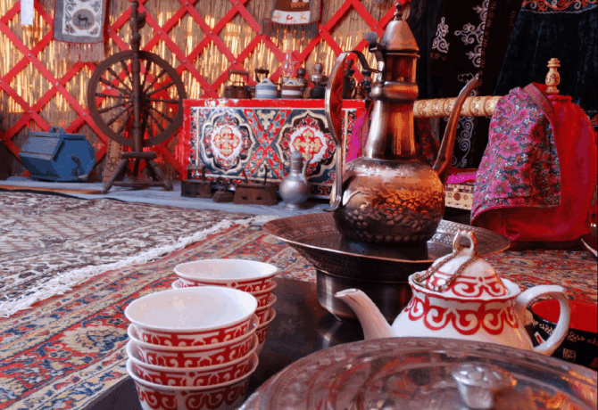 Чайную юрту можно назвать кафе лишь приблизительно, это аутентичное и интересное место. Гостям предлагают попробовать 12 сортов чая и восточные сладости: рахат-лукум, нугу, шербет, халву и печенье. Даже салфетки в юрте не простые, и на них написан текст местных анекдотов и легенд о чайных традициях. Если вам настолько понравится в музее и во всем городе, то неподалеку есть кемпинг, где предлагают уютные номера для всех желающих.