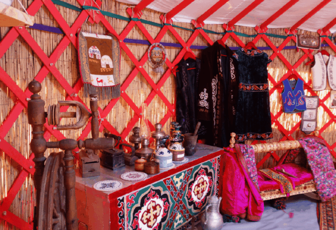 Чем уникальная алтайская юрта: у них есть стены из деревянных решёток, скрепленных кожей, присутствует богатое убранство, предметы быта. Все можно потрогать и сделать фото, а одежду примерить.