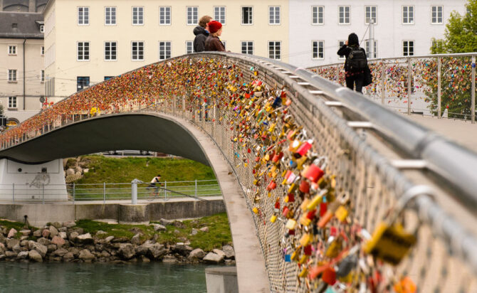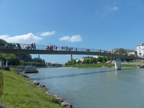 Это культовый мост, который можно увидеть на многих фотографиях с классическим горизонтом Зальцбурга. Этот мост имеет интересную историю, так как он существовал ранее в различных других версиях, которые по каким-то причинам нуждались в реконструкции. Мост назван в честь известного художника из Зальцбурга Ганса Макарта. У моста есть порт с левой стороны, откуда туристический катер забирает посетителей.