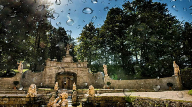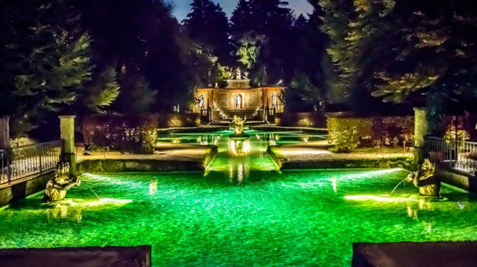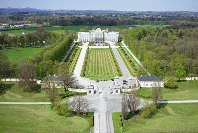 Этот дворец привлекает посетителей своей архитектурой эпохи Возрождения, садами и очаровательными фонтанами. Здесь также проходит зрелищное шоу фонтанов, которое было создано самим князем-архиепископом Маркусом Ситтикусом. Это серия слегка скрытых фонтанных форсунок на земле, которые распыляют и отображают красивые водные туннели.