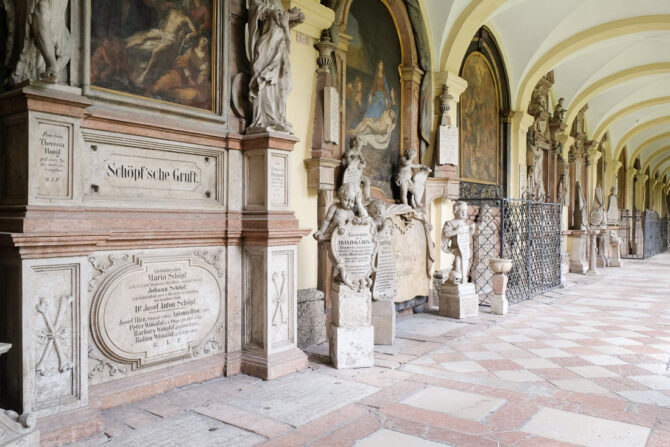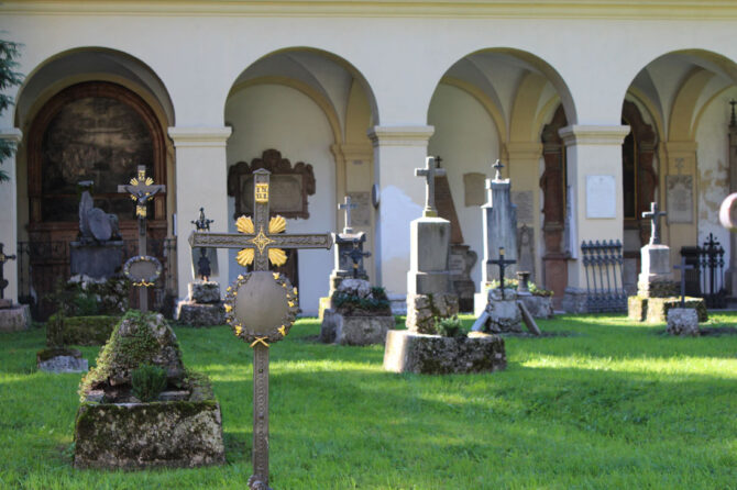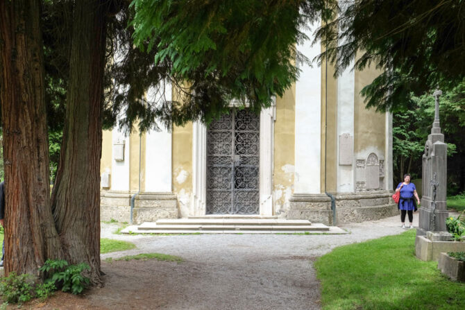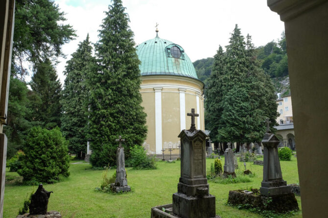 Церковь Святого Себастьяна была первоначально построена где-то между 1505-1512 годами. Хотя ее больше нет из-за пожара, но на ее месте стоит копия, которая была построена в начале 19 века. Кладбище является еще одной достопримечательностью, так как здесь покоятся некоторые известные люди, в том числе философ Теофраст Парацельс и несколько родственников Моцарта, включая его жену. Мавзолей, стоящий посреди кладбища, принадлежит князю-архиепископу Вольфу Дитриху.