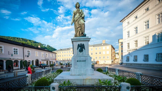 Зальцбург всемирно известен как место рождения Моцарта. Его резиденция расположена на знаменитой улице Гетрайдегассе. Само здание имеет желтый фасад, а внутри него находятся удивительные предметы 18 века, которые принадлежали музыкальному гению. Можно совершить экскурсию, чтобы осмотреть все экспонаты, такие как сертификаты, ноты и личную скрипку Моцарта.
