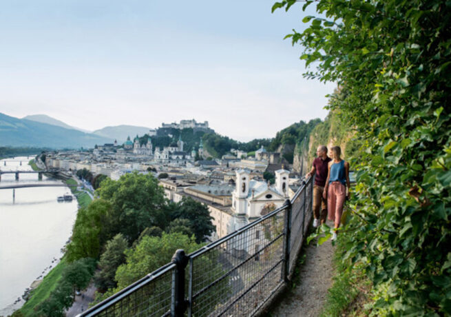 Гора Мёнхсберг изобилует пешеходными тропами, богатой природой, живописными видами на город, озеро и многое другое. Гора расположена через реку Зальцах от Старого города. Это знаменитое место отдыха для местных жителей. Здесь можно выбрать из более чем 5 различных пешеходных маршрутов, которые идеально подходят для людей с разным уровнем пешего туризма. Поблизости находится музей модерна, в котором хранятся образцы произведений современного и классического искусства. Рядом с музеем находится впечатляющий ресторан с прекрасным панорамным видом на город и озеро. На вершине Мёнхсберга есть плато, с которого можно увидеть красные крыши Зальцбурга.