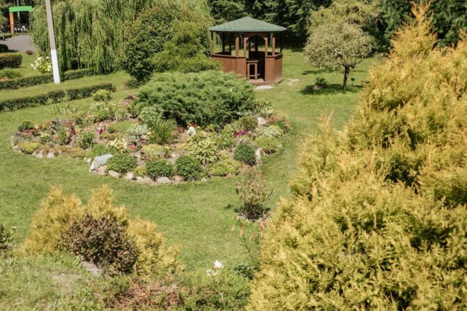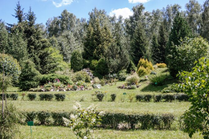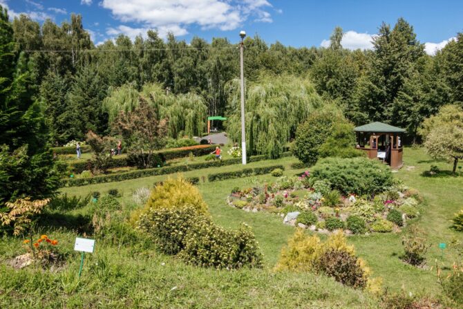 После посещения краеведческого музея нужно перейти на другую стороны улицы Ленина и отправиться по улице Дружбы к реке Погарщина. Сразу за гимназией № 10 находится дендрарий. Он занимает участок городского лесопарка. Пройти или проехать мимо невозможно. На входе установлены ворота с названием этого уникального парка. Он открыт с 08:00 до 18:00. Плата за вход – символическая – 20 руб. с человека. В самом центре промышленного города местные ботаники высадили 3, 5 тысячи растений, собранных со всего света. В связи с особыми условиями зимовки некоторых видов, дендрарий открыт для посещения с марта по октябрь. Затем смотрители готовят растения к зимовке.