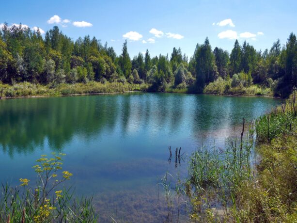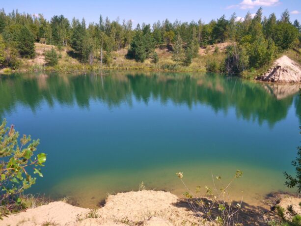 Далее можно проехать в сторону села Остапово, чтобы полюбоваться цветными озерами. 10 водоемов образовались в результате разработки рудных месторождений между отвалами. Со временем природа отвоевала свое, и теперь это красивейшие места в округе. Озера стали шире и глубже. Они подпитываются за счет осадков и грунтовых вод. Их окраска зависит от времени года и погоды. Вода бывает бирюзового, зеленого, бурого, красного и оранжевого цвета. Иногда палитра может сменяться в хаотичном порядке, особенно при нестабильных погодных условиях.