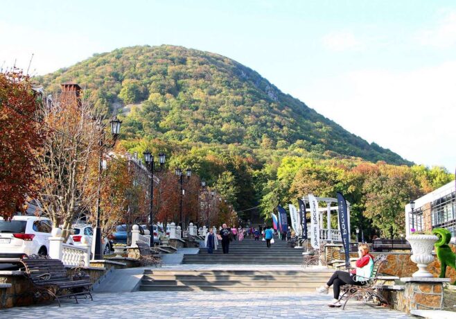 Над городом возвышается Железная гора. Часть ее склонов занимает Курортный парк. Вокруг нее проложен терренкур, поэтому красавицу, покрытую густыми лиственными лесами, можно осмотреть со всех сторон во время прогулки. Высота горы составляет 851 метр. Подъем начинается возле входа в Курортный парк. Эко-тропа отмечена яркой оранжевой вывеской, поэтому заблудиться невозможно. Путь проходит по лесу. Туристам не рекомендуется сворачивать с терренкура и пользоваться козьими тропами или высохшими руслами ручьев для сокращения пути. Здесь могут встретиться непролазные буреломы и придется возвращаться назад. На подъем и спуск обычно уходит от полутора до двух часов. Маршрут не сложный, перепад высот составляет максимум 210 метров. С вершины открывается обзор на город и долину. Можно взять с собой бинокль, чтобы рассмотреть другие горы, расположенные поблизости.