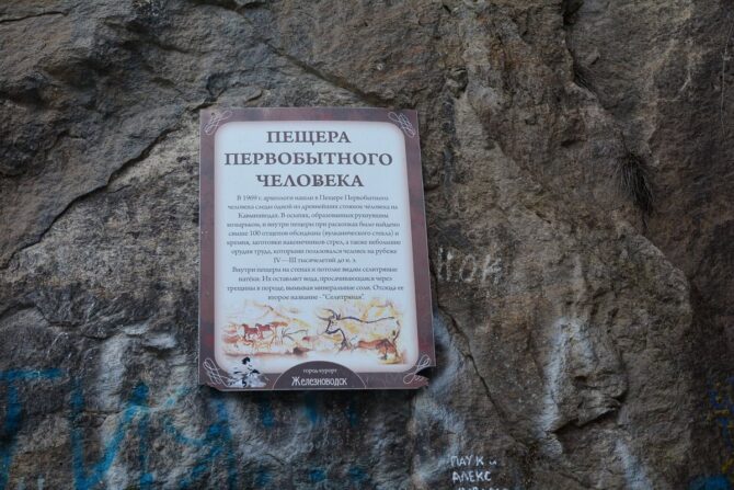 К горе Развалка ведет терренкур № 3. Рядом с ней находятся Селитряные скалы. Здесь была найдена стоянка древних людей. Пещера доступна для осмотра. К ней ведет развилка от указателя «Второй дед». Тропинка проведет мимо «третьего деда» («деды» — это деревянные скульптуры, вырезанные из стволов сухих деревьев). Отсюда можно свернуть на каскадную лестницу и вернуться в город. Если пройти дальше, то в нескольких десятках метров будут Селитряные скалы. От них ведет удобный спуск к пещере древнего человека. Она расположена на восточном склоне. Ее отыскали археологи в 1969 году. Есть легенда, что раньше вход был закрыт скалой и знали о нем только местные охотники. Несмотря на небольшие размеры (10 м), здесь можно было укрыться от дождя, развести костер, переночевать. В процессе раскопок были найдены древние орудия труда и бытовые принадлежности.
