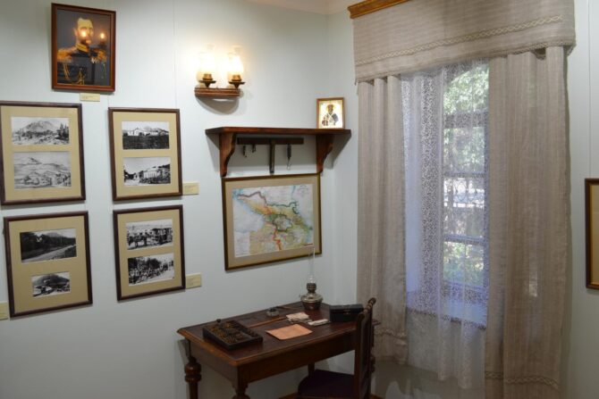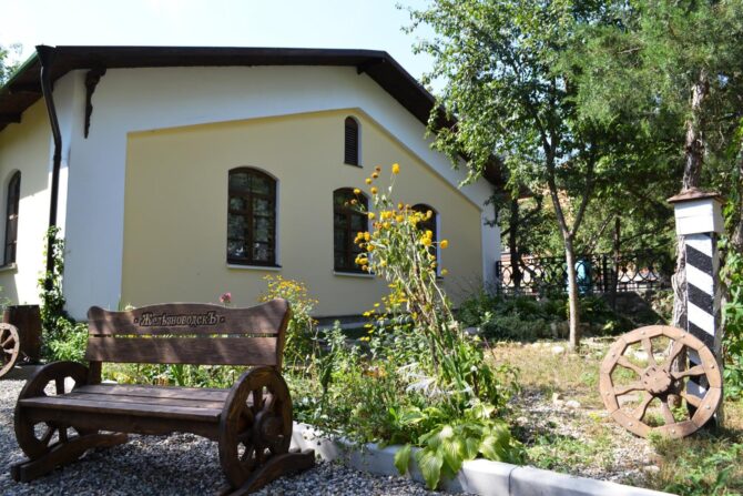 В одном из залов воссоздана обстановка рабочего кабинета писателя. На улице установлен старинный почтовый дилижанс. В середине 19 века это был единственный транспорт, на котором можно было добраться до Кавказских Минеральных Вод. Туристы любят фотографироваться рядом с дилижансом, а также деревянными колесами и другими инсталляциями, созданными на подворье. В продолжение экскурсии по истории развития транспортных путей Железноводска можно в свободное время посетить железнодорожный вокзал. Ветка закрыта, работает только одно крыло с кассами по продаже билетов дальнего следования. Здание вокзала признано памятником архитектуры и охраняется государством.