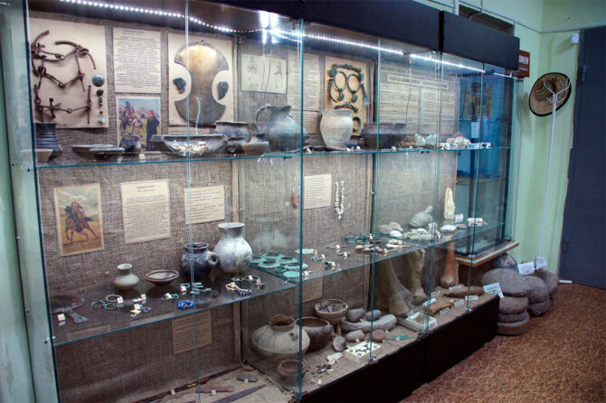 Военная экспозиция открылась в 1985 году. Затем энтузиасты начали пополнять фонд музея разнообразными находками, в том числе археологическими. Оказалось, что в окрестностях в разные эпохи жили люди, в том числе и представители древних цивилизаций. Здесь были найдены предметы Кобанской культуры, скифские и сарматские украшения, оружие, конская упряжь и бытовые вещи. Археологические экспонаты рассказывают об их торговле с Византией, Китаем, Индией через Великий Шелковый Путь. Некоторые артефакты были найдены непосредственно на территории города. Огромный интерес представляет история железоплавильного ремесла у алан, которое развивалось в подножия горы Развалка. На стендах представлены кузнечные принадлежности, мотыги, косы, серпы, топоры.