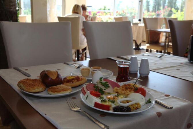 Настя, Москва: «Еда на высоком уровне. Всегда все свежее, завтраки богатые, в обед и ужин достаточно рыбы, курицы, мясо больше не кусками, а шарики или котлетки. Еды всегда хватало. Для полуночников есть сытный супчик. Детям понравилось, что у моря можно хорошо покушать – картошечка, гамбургер, лепешки гизлеме, в других отелях я такое не встречала. Фрукты спелые, разнообразные. В обед давали воду в бутылках, которую можно забирать с собой. Кофе-соки можно брать в любое время.