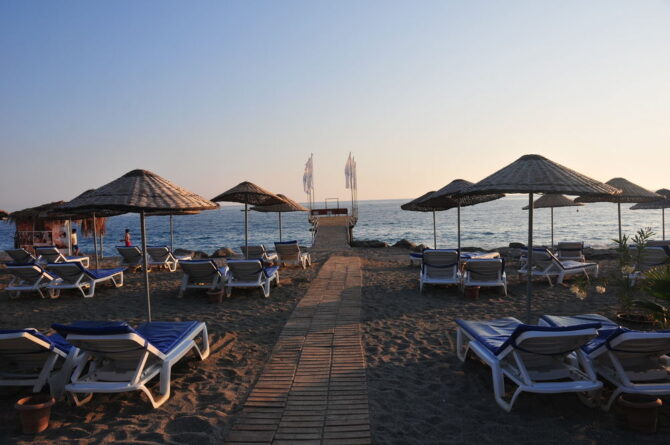 Инга, Пермь: «Территория, конечно, очень маленькая. Хотя вокруг много пустой земли, отели не натыканы плотно как где-нибудь в Анталии. Перед дорогой и за ней есть чуть-чуть зелени, но в основном газон да пальмы, неплохо было бы посадить побольше цветов. Дорога к морю приятная, проходишь по переходу и как-то даже не замечается, что это вторая линия. Идти удобно, можно хоть босиком, если бы не было так горячо.