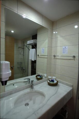 В номерах есть все необходимое для комфортного отдыха – ванная комната с ванной или душевой кабинкой, телевизор, система кондиционирования, балкон, шкаф, стол, платный сейф. Имеются полотенца, туалетные принадлежности, средства для мытья.