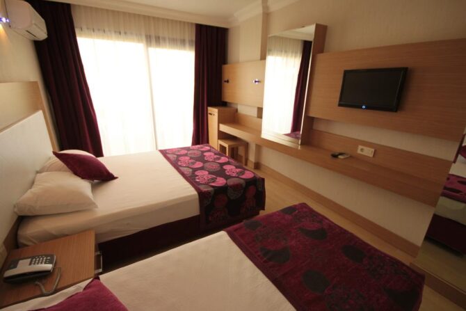 Марина, Уфа: «Очень чисто и уютно. Явно здание не очень новое, но мебель вроде ничего, покрывала и занавески чистые, не потертые, не дырявые. Правда, вначале заселили в комнату с обзором на море, но этаж третий, ничего особенно не видно и шумно. Кроме того, от матрасов какой-то запах сырости и затхлости. Муж попросил, и нам дали бесплатно другую комнату (как изначально и брали – с окнами на горы). Мне в нем понравилось больше – мебель новая, запахов никаких нет. Душевая кабинка закрытая, вода не растекается по полу.