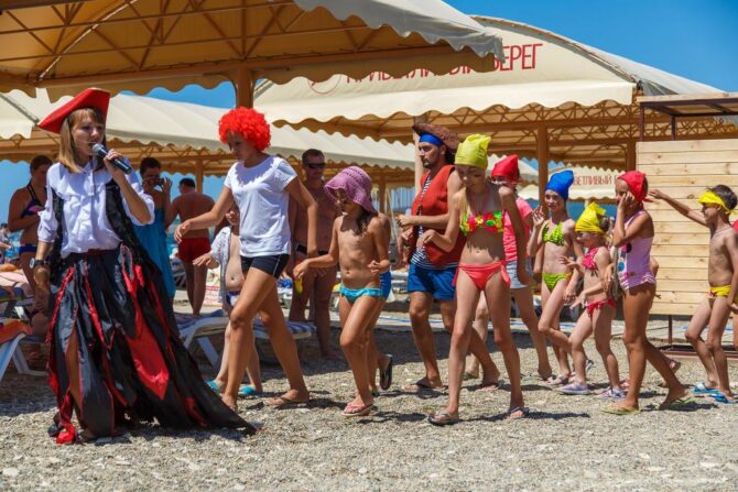 Чтобы гостям пансионата не когда было скучать, аниматоры разрабатывают новые и интересные активности. Каждый гость может посетить фееричное шоу, спортивное соревнование. Постановки действительно яркие и запоминающиеся. Деток можно отправить на конкурс талантов. Их проводят и на территории комплекса и на пляже. На пляже можно еще воспользоваться волейбольной площадкой. Есть отдельная игровая зона для детей. Между теплой и уютной постелью и приветливым теплым морем всего несколько шагов.