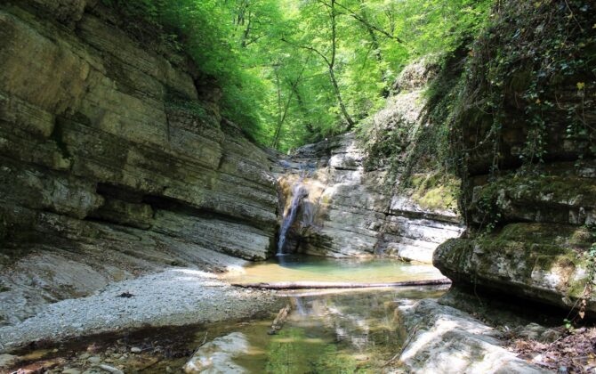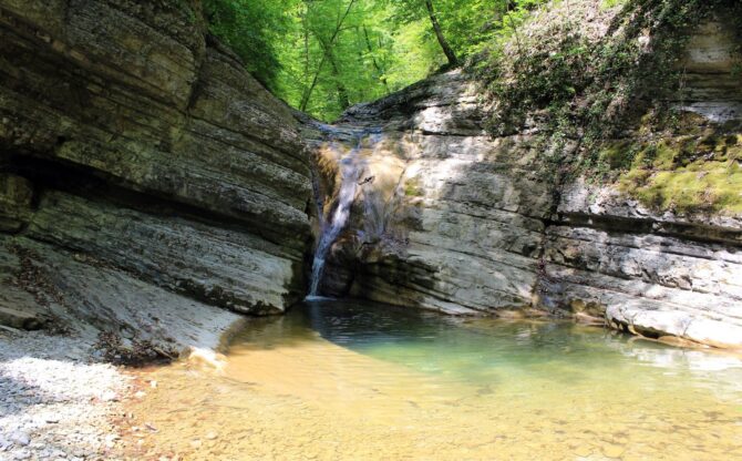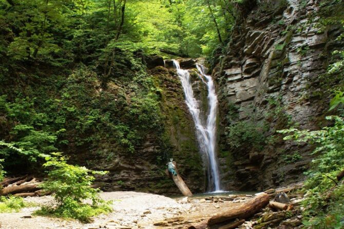 Несложный маршрут, доступный для всех возрастов, предлагает природная достопримечательность Псегуашские водопады. Это древнее священное место шапсугов. Название в переводе означает «Дева – покровительница воды». Здесь проводились ритуалы в честь водной богини. Сегодня – это популярное туристическое направление с развивающимся экстрим-парком. Для посетителей построен веревочный городок, тир, повсеместно установлены скульптуры, открыта баня, работает кафе. Им также предлагается лазерный пейнтбол, сафари на багги, стилизованные под сказки лесные полянки, на которых можно поиграть с детьми.