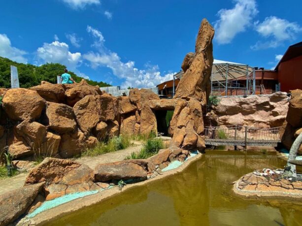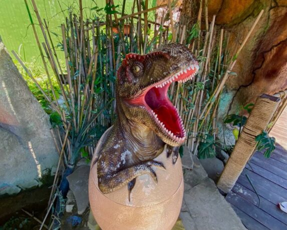 Главными экспонатами являются роботизированные фигуры гигантских рептилий. Они не только двигаются, но и издают характерные звуки. Идея у авторов экспозиции возникла после просмотра фильма Спилберга «Парк Юрского периода». Они решили, что «оживленные» экспонаты будут выглядеть более интересно, а прогулка по аллеям превратится в захватывающее приключение. Для этого территория была разделена на тематические зоны. Как в фильме, здесь можно посетить загон, заброшенную лабораторию, водоем с торчащей из него затопленной машиной и другие локации.