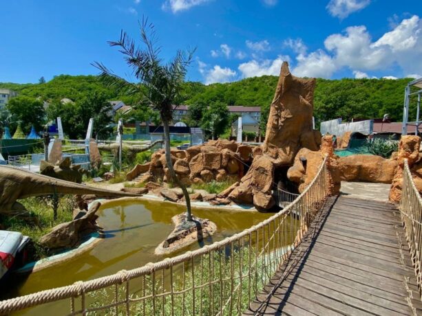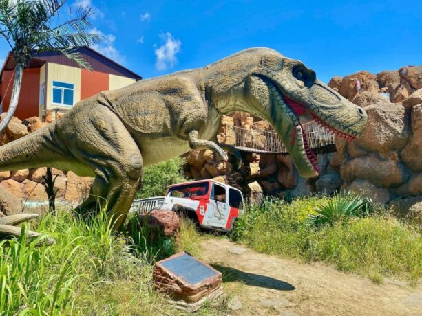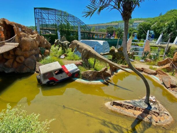 Организаторы курортных развлечений решили подчеркнуть уникальность природы Джубгы, создав динопарк Юрского периода. Это развлекательная зона особенно интересна для детей, хотя и взрослым здесь будет, на что посмотреть. Тематический парк открылся в 2015 году. он работает ежедневно с 9:00 до 21:00. Цена билета единая для всех посетителей, кроме детей до 3-х лет. Их пропускают бесплатно. В 2022 году стоимость билета составляет 750 руб.