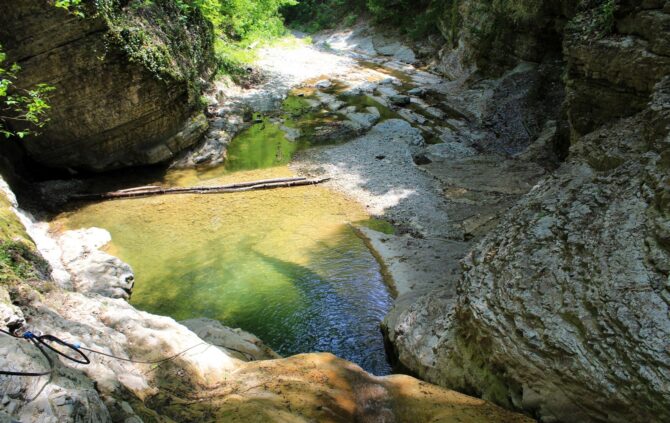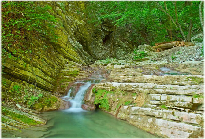 После Гебиусских водопадов можно дойти до поселка Бжид, чтобы посетить еще одну природную достопримечательность – Мельничную Щель. Как гласит рекламный щит, здесь путешественников ждут водопады, озера и рыбалка. У самого входа расположено кафе, в котором подают блюда из свежей рыбы. В лесу оборудованы пикниковые зоны. Владельцы бизнеса сделали все для того, чтобы у туристов не возникало вопросов с питанием.