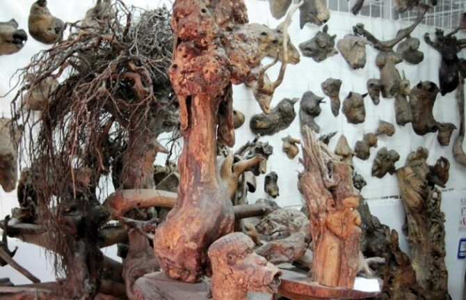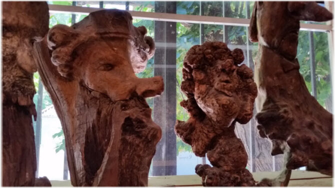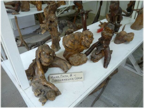 В творчестве Антона Михайловича присутствуют разнообразные мотивы. Экспонаты представляют образы насекомых, животных и знаменитых людей. Самое известное произведение – это бюст Лермонтова. Также мастеру удалось найти природный объект, похожий на образ Маяковского. В экспозиции представлено много работ на тему фэнтези. Таких персонажей на земле никогда не было, но их прекрасно понимают все, кто любит приключения в фэнтезийном жанре.