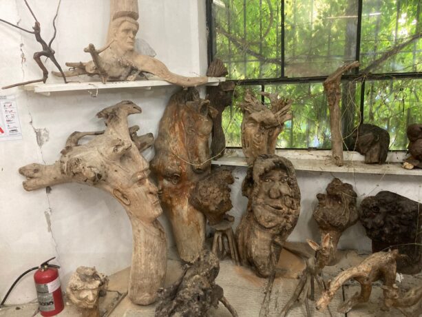 Пройти мимо музея невозможно. На повороте к нему установлена фигура динозавра, выполненная мастером на природной «заготовке». Одно из поваленных деревьев действительно напоминало гигантскую рептилию. Антон Михайлович лишь довел экспонат до совершенства и выкрасил его в соответствующие цвета. Конечно, не все экземпляры окрашены, в основном они покрыты лаком, который защищает поверхность от коррозии и разрушения. Выставочные залы находятся на двух этажах. Экспозиция разделена по тематическим направлениям.