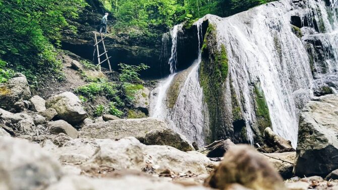 6-метровый водоскат называют «Гротом Высоцкого». Джубга был любимым курортом актера. Он часто проводил здесь отпуск. Гебиусские водопады настраивали его на отдых и творчество. Бард приходил сюда один или в компании с Мариной Влади. Самый высокий водопад «Пасть дьявола» возвышается над горной рекой почти на 20 метров. Свое название он получил из-за устрашающего водоската, напоминающего пасть чудовища с обнаженными клыками. Для того, чтобы до него добраться, придется преодолеть многочисленные ступени и переходы, спуски и подъемы. Немногие решаются на такой переход, но те, кто проходит все Гебиусские водопады, никогда не жалеют о потраченном на поход времени.