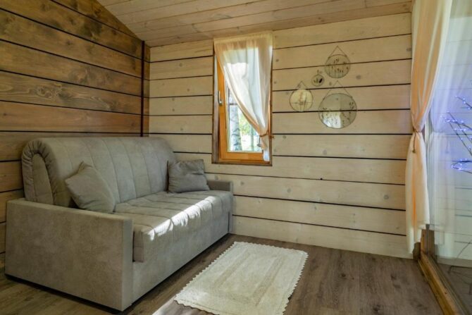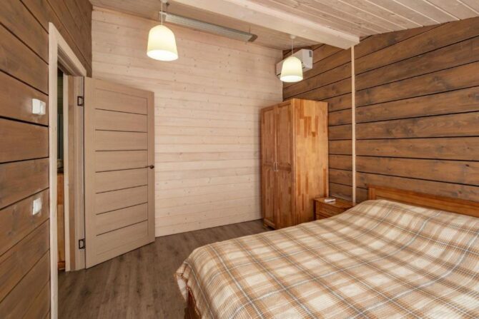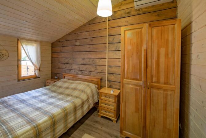 В домах «Иволга», «Зорянка» и «Ласточка» оборудована отдельная спальня. В «Стрижах» – три спальни и три санузла, а также установлены две двуспальный кровати.