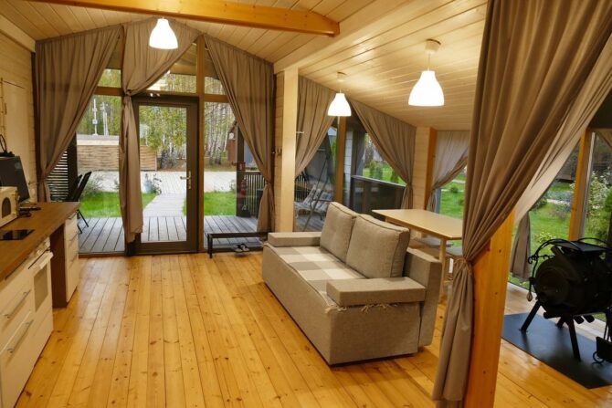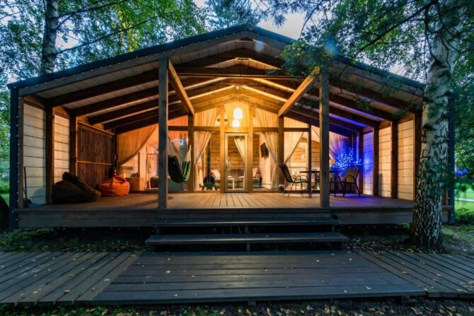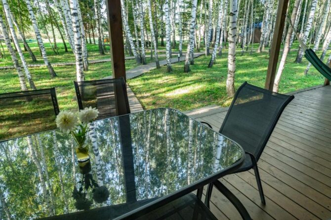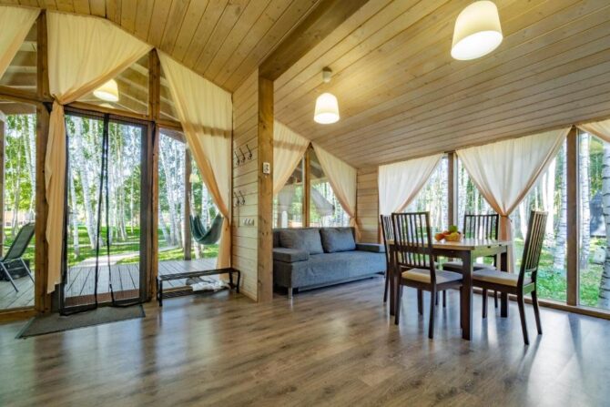 Семьи, близкие друзья и влюбленные пары часто ищут возможности отдохнуть в уединении подальше от родного города в лесной местности, но при этом не лишиться комфортных условий. Эко-отель Panorama прекрасно подходит для того, чтобы удовлетворить это искреннее желание. Уютные домики, бытовые приборы под рукой, березовая роща на территории которой «скрывается» гостиница – все это добавляет преимуществ и подталкивает будущих гостей к выбору «Панорамы» для отдыха вместе с детьми, друзьями или второй половиной.