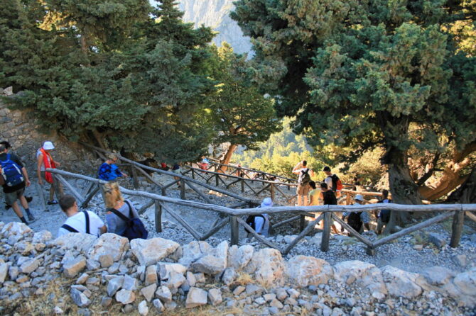 — Трансфер доставит вас на остров Крит, а именно в самую западную его часть. Здесь располагается много зелени и невероятной красоты гористая местность. Считается одним из самых длинных в Европе – Самарийское ущелье. Первые поселенцы обосновали эти места довольно давно. В нынешнее время здесь разработан туристический маршрут. Чтоб пройти пешим ходом всю экскурсию необходимо будет преодолеть 16 км. Без спешки наслаждаясь здешними пейзажами можно пройти это место с небольшими остановками. Ввиду длительной прогулки маленьких деток лучше не брать.