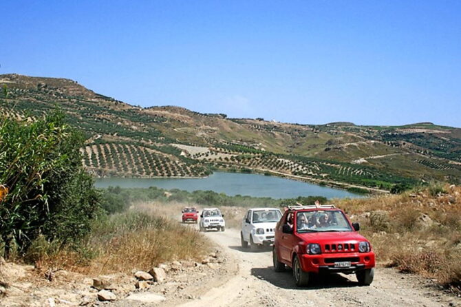 Начало этого захватывающего приключения проходит вдоль оливковых рощ. По сложным горным дорогам автомобили будут подниматься все выше и выше, минуя деревни местных жителей, которые живут в Ласситийских горах. В деревне Кастамоница будет первая остановка на пути следования. Любителям древних цивилизаций и руин это место придётся по душе. Поселок окружают древнеримские руины, по которым можно погулять. После вкусного кофе выпитого в местной кофейне можно дальше отправляться в путь.