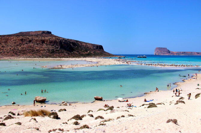 Основная часть туристов приезжает на Крит, чтоб отдохнуть покупаться. Любителям всего неизведанного стоит отправиться в лагуну Балос. В этом месте сливаются три моря воедино, из-за чего море получает несколько разнообразных оттенков. Здесь прекрасные песчаные пляжи на мелководье и теплая прозрачная вода. В этом месте находятся самые красивые пляжи Крита, а чтобы их увидеть отправляйтесь на Балос.