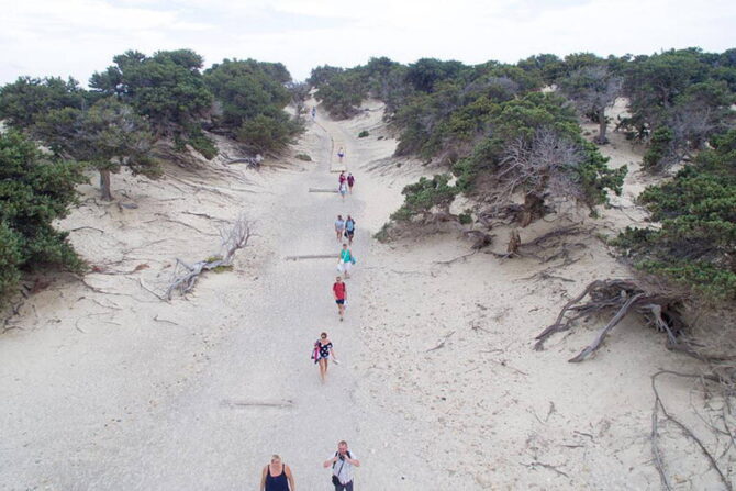 Любителям открывать что-то новое есть что посмотреть на острове. Особенно примечательны разные оттенки вулканического песка и всевозможные ракушки. Несмотря на островную местность здесь расположились песчаные барханы. На которых прекрасно прорастают ливанские кедры всевозможных форм и размеров.