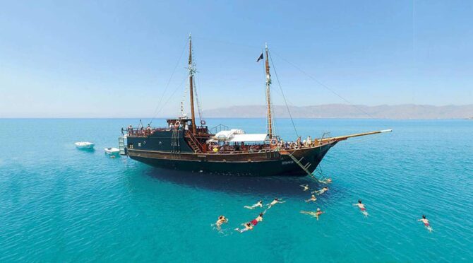 Выезд начинается прямо у порого вашего отеля в Херсониссосе. На удобном роскошном автобусе трансфером можно доехать до порта. В портовом городке Иерапетра необходимо будет совершить посадку на борт корабля.