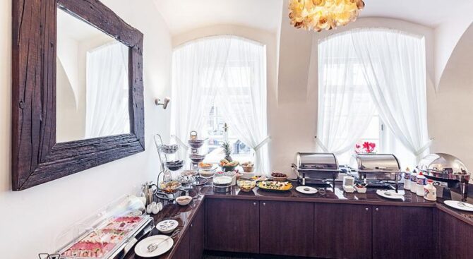 The hotel serves a buffet breakfast, however, if you want to have a snack outside the hotel, you will always find a café or restaurant to your liking nearby, because in the center of Prague there are a lot of them.
