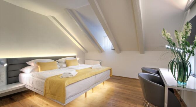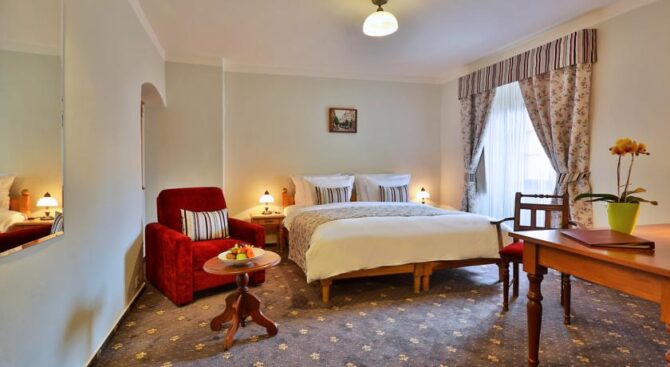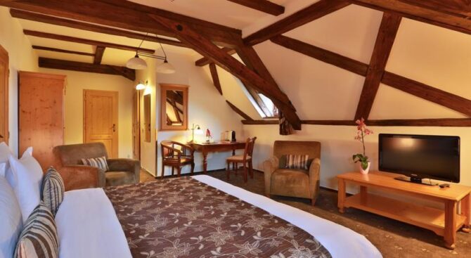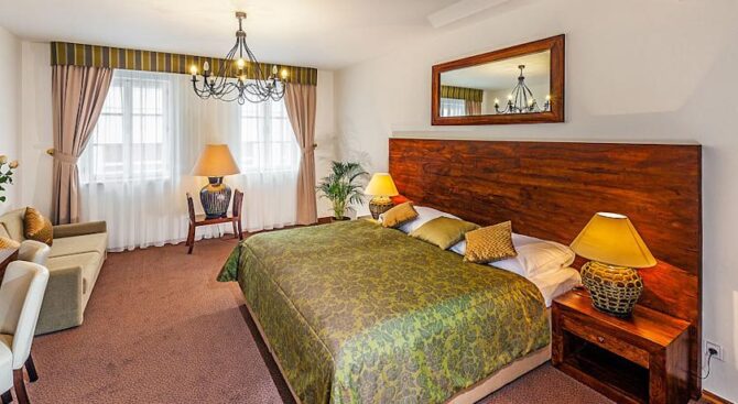 The hotel offers guests both Czech and international breakfast, which can be requested to be brought directly to the room. Free Wi-Fi is available on site. It has 28 rooms of different comfort levels. Each room has a minibar, as well as the necessary tea and bathroom accessories. The staff speaks several languages.