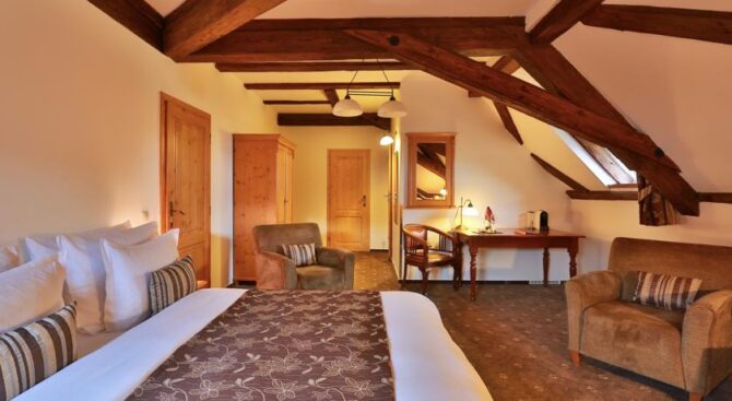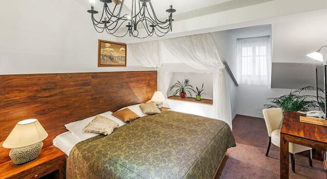 The hotel consists of several buildings and offers its visitors 26 rooms of different comfort levels, including family rooms and non-smoking rooms. The main building of the hotel was built in the XVI century, there are also rooms in the Gothic tower, which dates back to the XIII century and for some time was the official residence of the bishop.