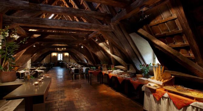 Tourists love this place for its location. So, the hotel is located in a baroque palace. You can have breakfast right in the chapel, or in good weather you can order breakfast on the summer terrace.