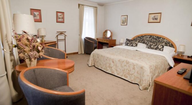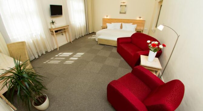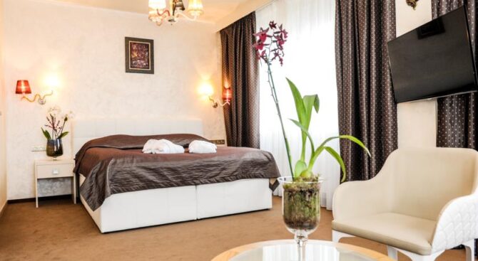 Pleases its visitors with one of the lowest prices for accommodation in the category of hotels “4 stars”. Unitas Hotel offers 36 rooms of different comfort levels. In the hotel you will feel as comfortable as possible, because each room has the necessary bathrooms and tea accessories, and air conditioning.