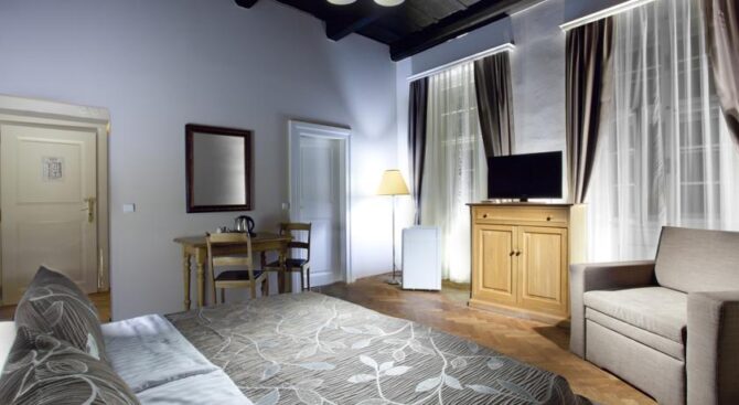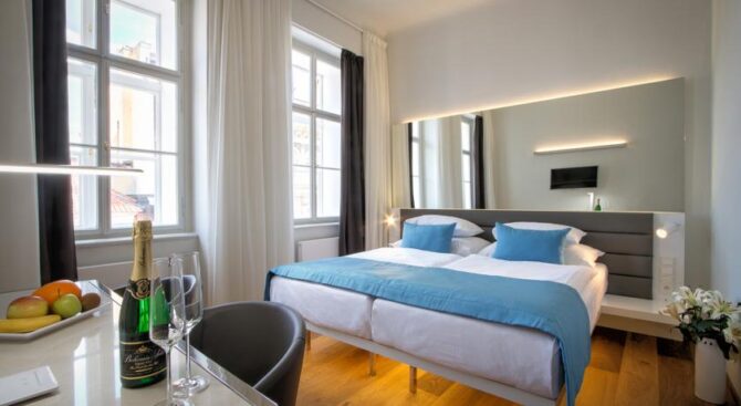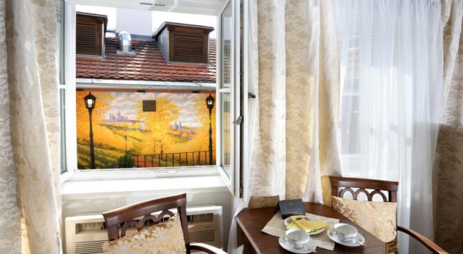 The hotel is located in Prague 1 and offers its visitors 27 rooms of different comfort levels. Each room is individual in design and colors, however, each of them offers a beautiful view of Prague. In the rooms you will find all the most necessary accessories, as well as air conditioning and TV.
