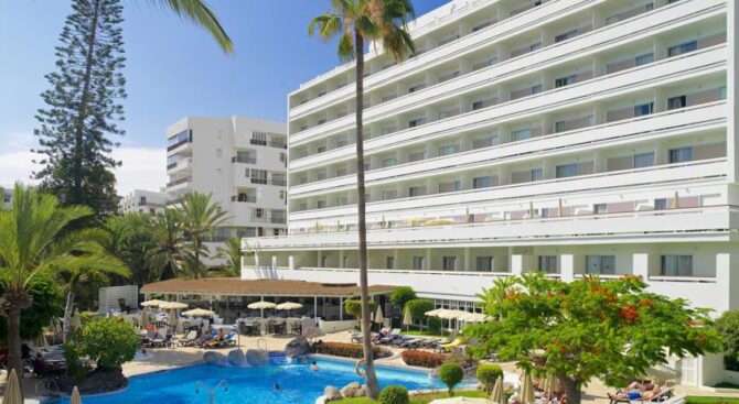 This hotel has a small colonial-style building. It is located near the beach, which is called Playa de Fañabe in a prestigious area of Tenerife. Guests can appreciate the heated swimming pool surrounded by trees.