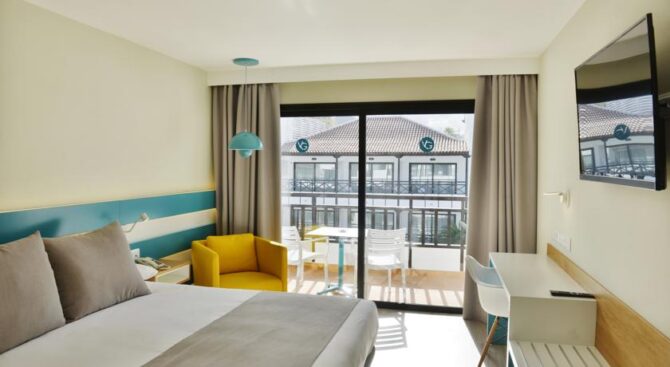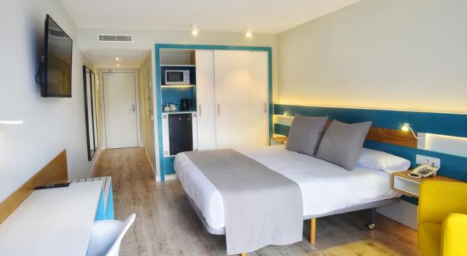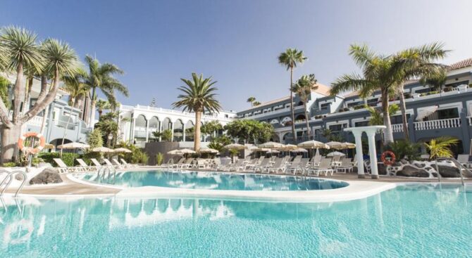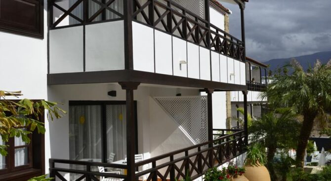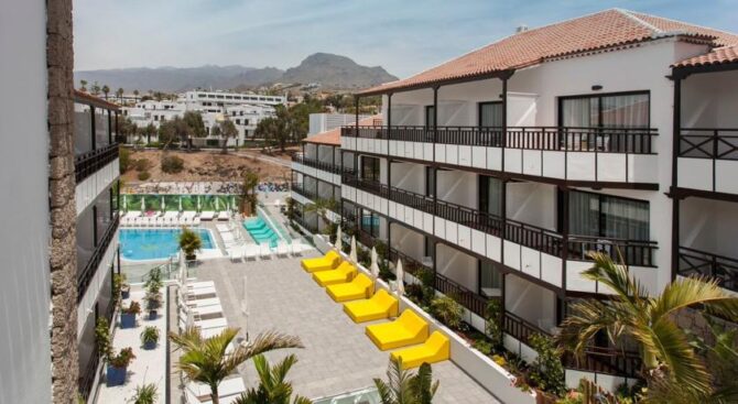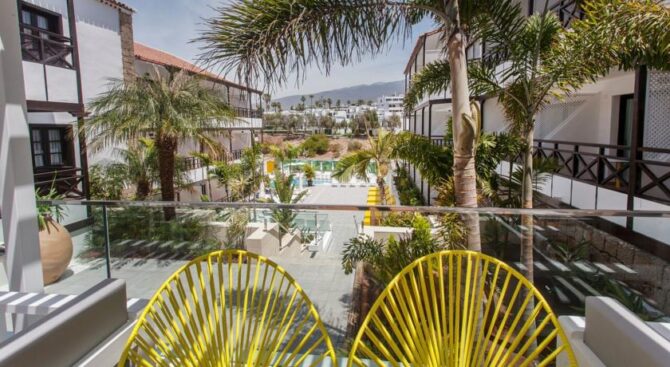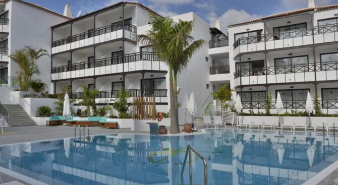 This chic resort complex in Tenerife is ready to offer its guests bright and stylish rooms, which are decorated in different colors. Each apartment has a balcony and a comfortable kitchen. The living room is equipped with a TV and a soft sofa.