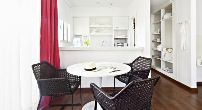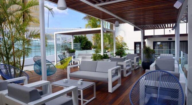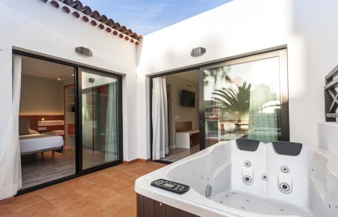 The resort complex is specially designed for adult guests. Children are not allowed to enter its territory. Enjoy relaxing treatments at Aparthotel Sunprime Coral Suites & Spa – Adults only will allow you to stay in the spa located in this resort. Plenty of swimming is available in the outdoor pool. You can admire the magnificent view of the Atlantic Ocean directly from the terrace, which is located on the roof of the building.