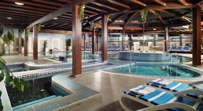 The hotel’s spa offers a wide range of wellness and beauty treatments, as well as a thermal pool. The hotel also has a fitness centre.