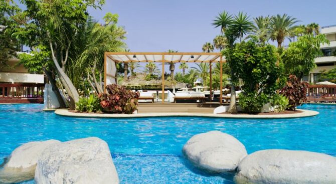 This boutique hotel is ready to offer its guests a magnificent view of the island of Gomera from the rooms. It is surrounded by amazing tropical trees and a place to play tennis. There is also a private pool. This resort in Tenerife is only accessible to adults. It offers free high-speed internet throughout the hotel.
