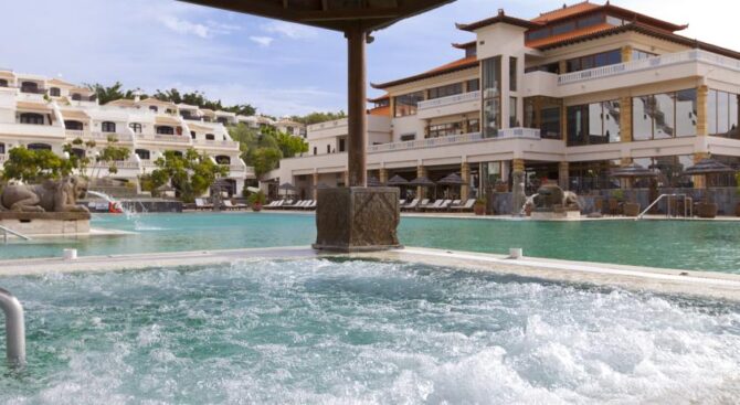 This aparthotel in Tenerife has two restaurants. In addition, there is a free delivery of visitors to the beach. The building is made in Asian themes with marble and stone finishes. Each of the air-conditioned rooms has a modern bathroom and a comfortable kitchen. The bedrooms of the Regency Country Club, Apartments Suites are equipped with beds decorated with decorations in the form of canopies.
