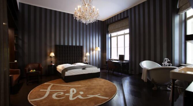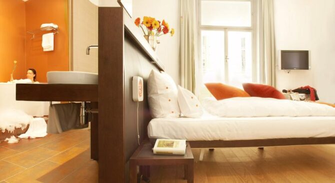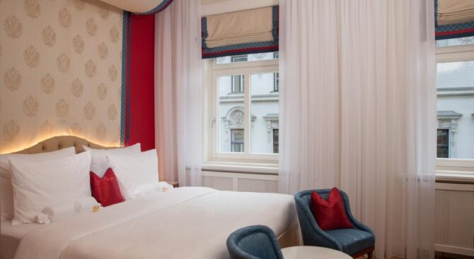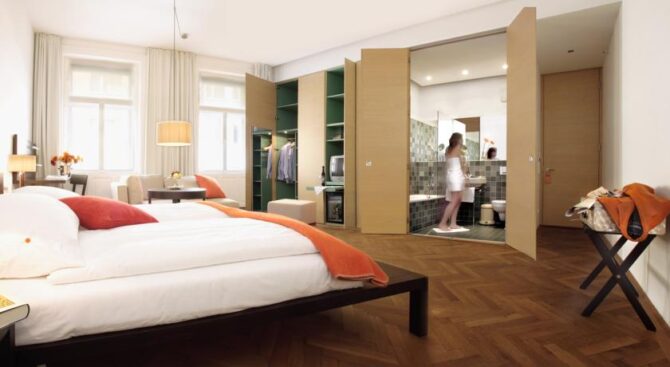 Small Luxury Hotel Altstadt Vienna pleases with a good location, it will be good for everyone who loves museums and shopping, as well as friendly staff, fully equipped rooms. The rooms have everything you need – air conditioning, TV, bath amenities, tea and coffee. An additional option for guests is the opportunity to rent clothes from the leading designers of Austria. She will be taken directly to the room.