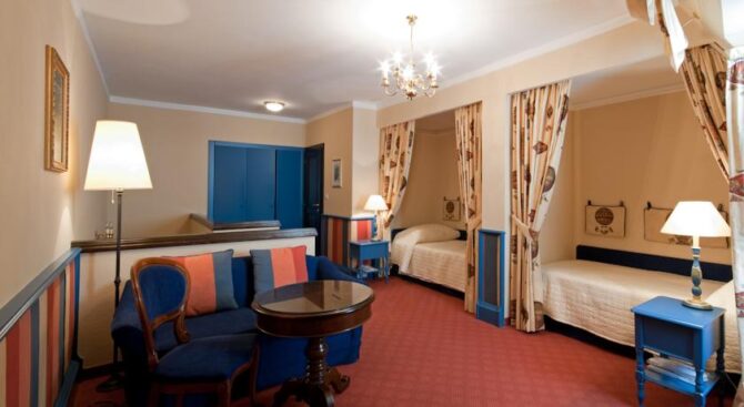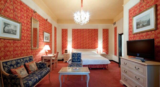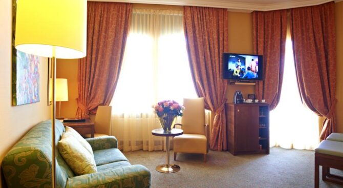The rooms are decorated in an antique style. They themselves are very elegant and well equipped, have everything you need for a comfortable life. The rooms have beautiful and good furniture, modern bathroom, internet, TV and air conditioning. A minibar is also included.