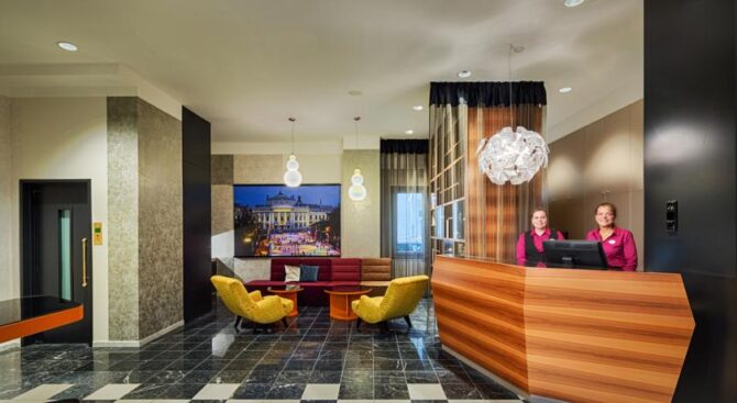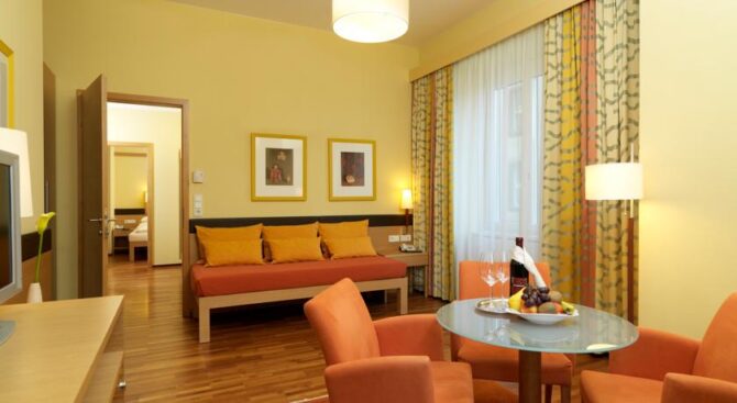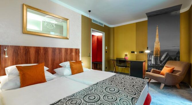 The hotel is centrally located in the inner city. It is surrounded by beautiful buildings and famous sights of Vienna. The Vienna Opera is a 10-minute walk away and St. Stephen’s Cathedral is a 2-minute walk away. And lovers of shopping will be interested in walking along the main shopping streets – Kärntner Straße and Graben. You will reach them in about 7 minutes. There is a subway nearby, so there will be no problems with transport.