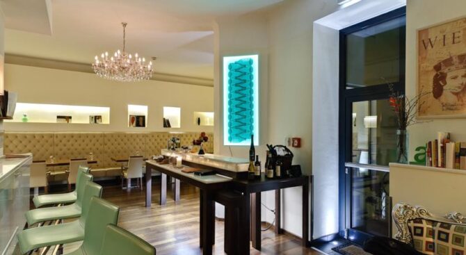In the heart of Vienna, in the district “8”, lies the beautiful Hotel Rathaus – Wein & Design,which is located in an old building. The main theme of this place is winemaking. Each issue is dedicated to this theme, usually dedicated to one of Vienna’s leading winemakers. The restaurant has a huge list of vintage wines, there are 450 items in total.