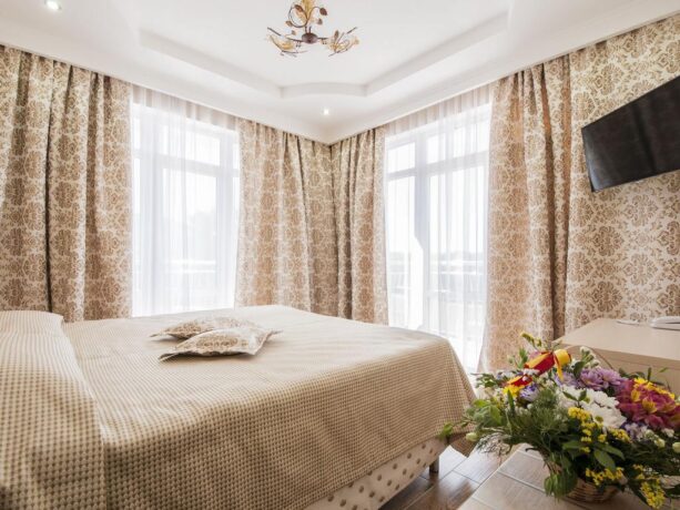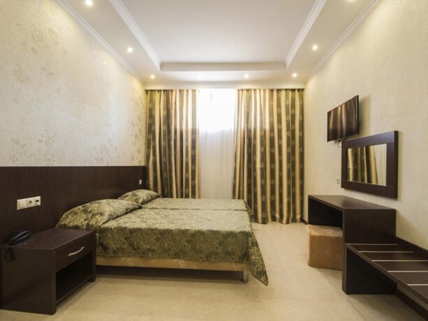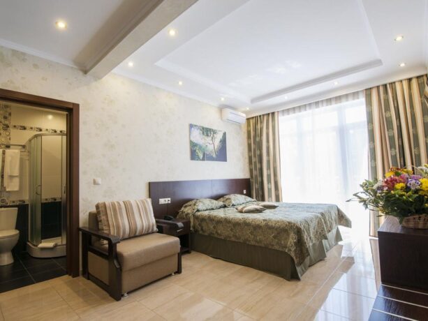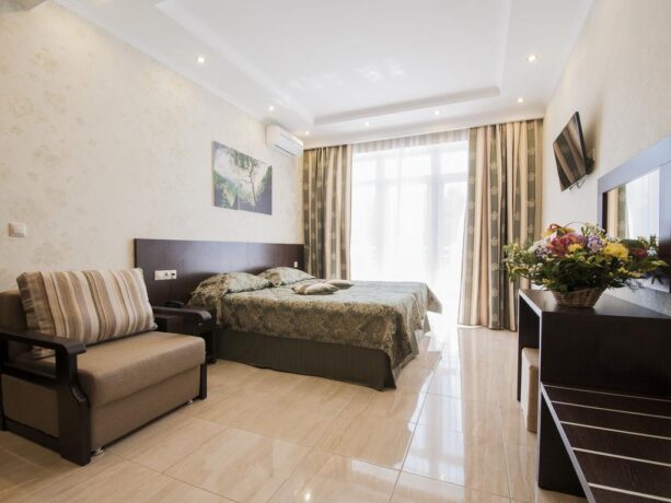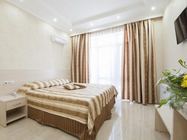 To accommodate guests, 71 superior rooms are offered. Each category has its own unique style, design, unique living conditions. All rooms are quite spacious, homely cozy. The windows offer breathtaking views of the mountains, the sea and the picturesque Kabardinka.